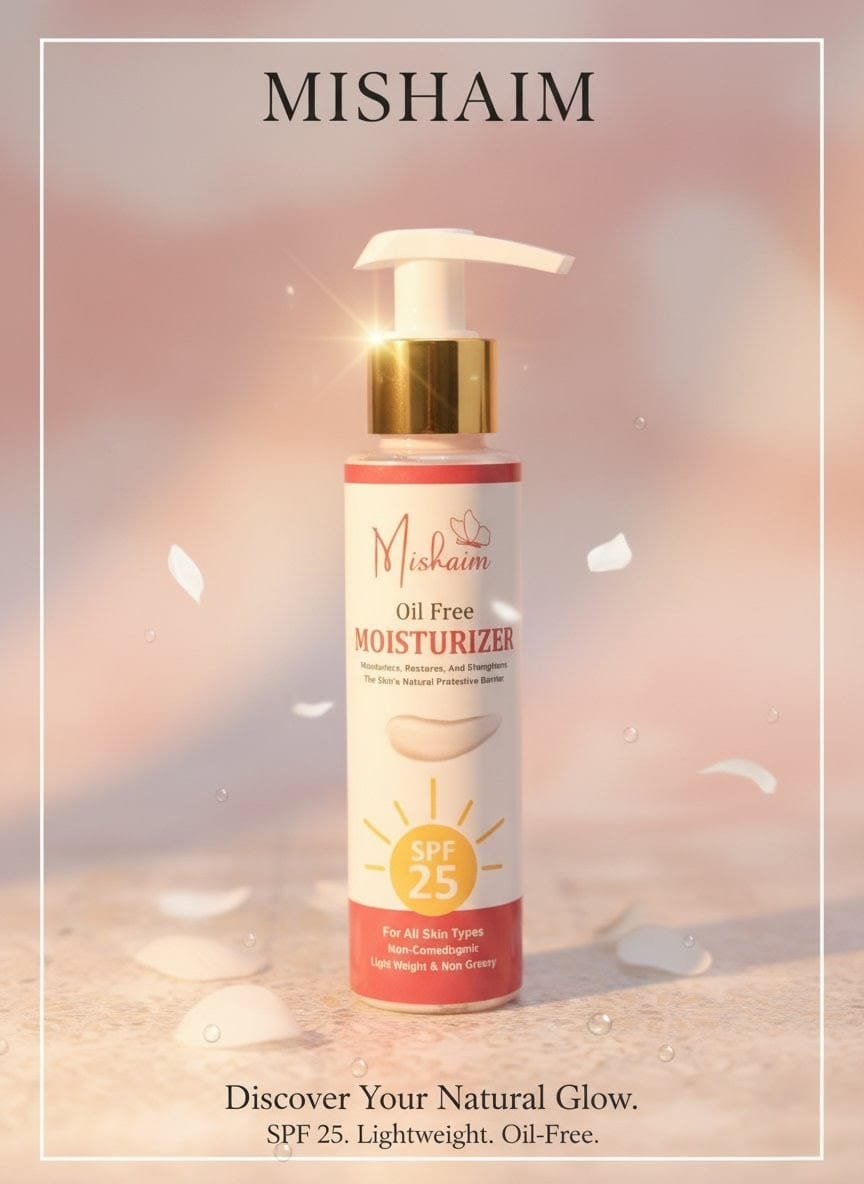 Discover Your Natural Glow with MISHAIM Oil-Free Moisturizer SPF 25 — your skin’s perfect daily companion.